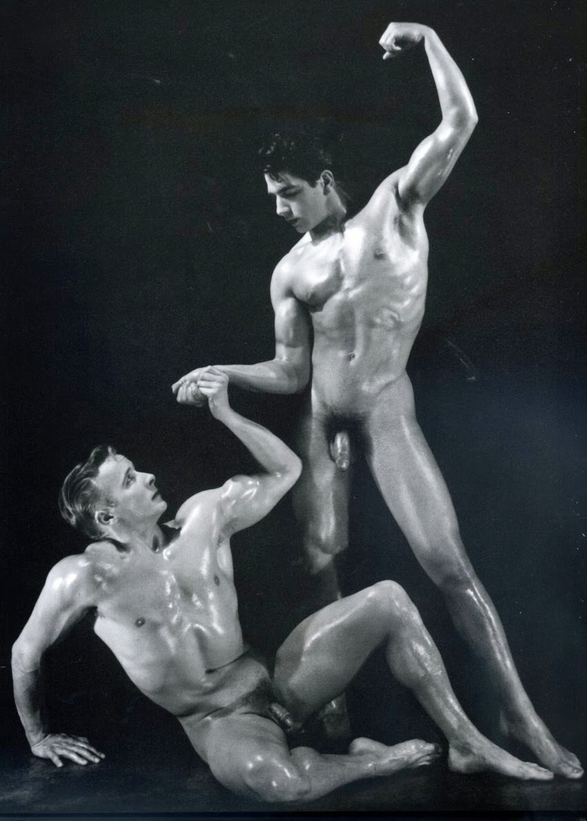Below are some great images of vintage beefcake men together. Erotic, but not sexual...